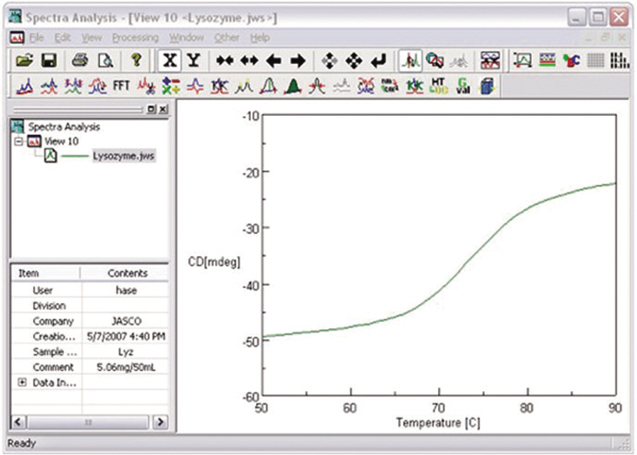 Enables calculation of the thermodynamic parameters (Tm, ΔH, ΔS) of protein from the data with variable temperatures.