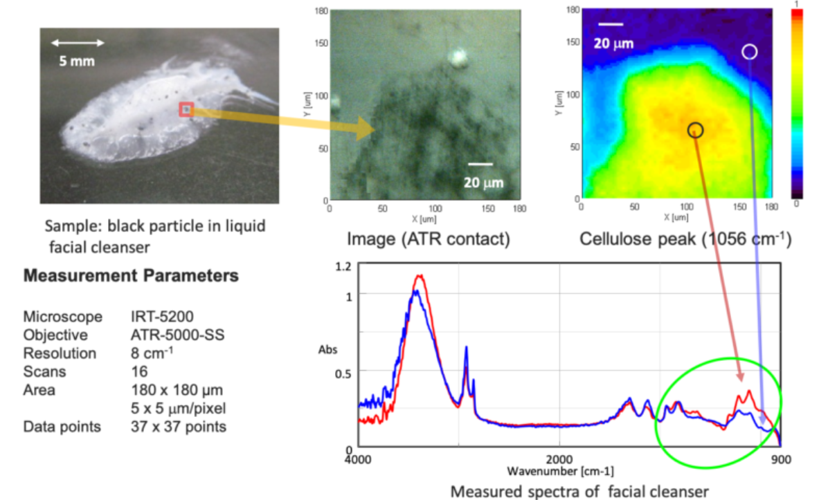 IR microscopy has similar problems with sample preparation as routine macro measurement, but these can also be remedied in the same way by using an ATR objective in place of a transmission or reflection cassegrain. However in microscopy the additional element of sample observation creates a second and important consideration – how to identify the correct measurement location?