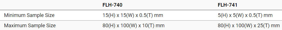 The FLH-740 includes leaf-springs for holding the sample and the FLH-741 includes a sliding clamp and mask for small area measurement.