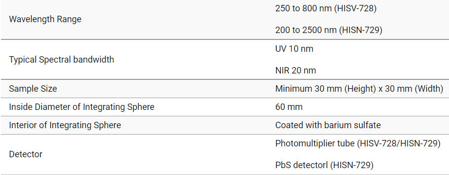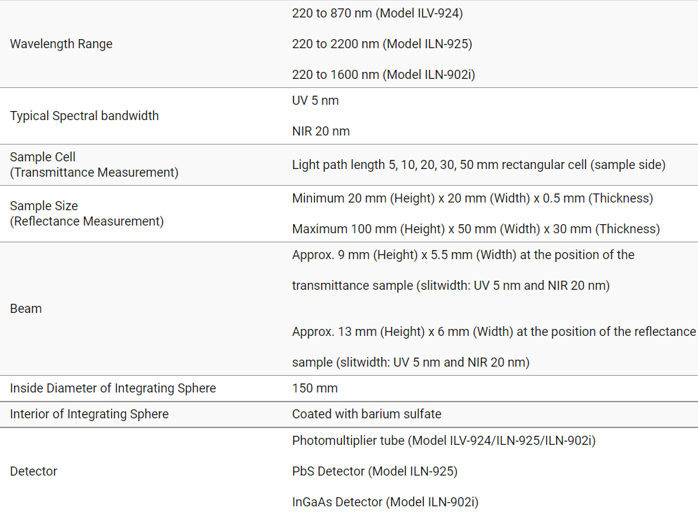 All JASCO Integrating spheres include built in detectors for optimal sensitivity – PMT for UV-visible, InGaAs up to 1600nm and PbS up to 2500nm.