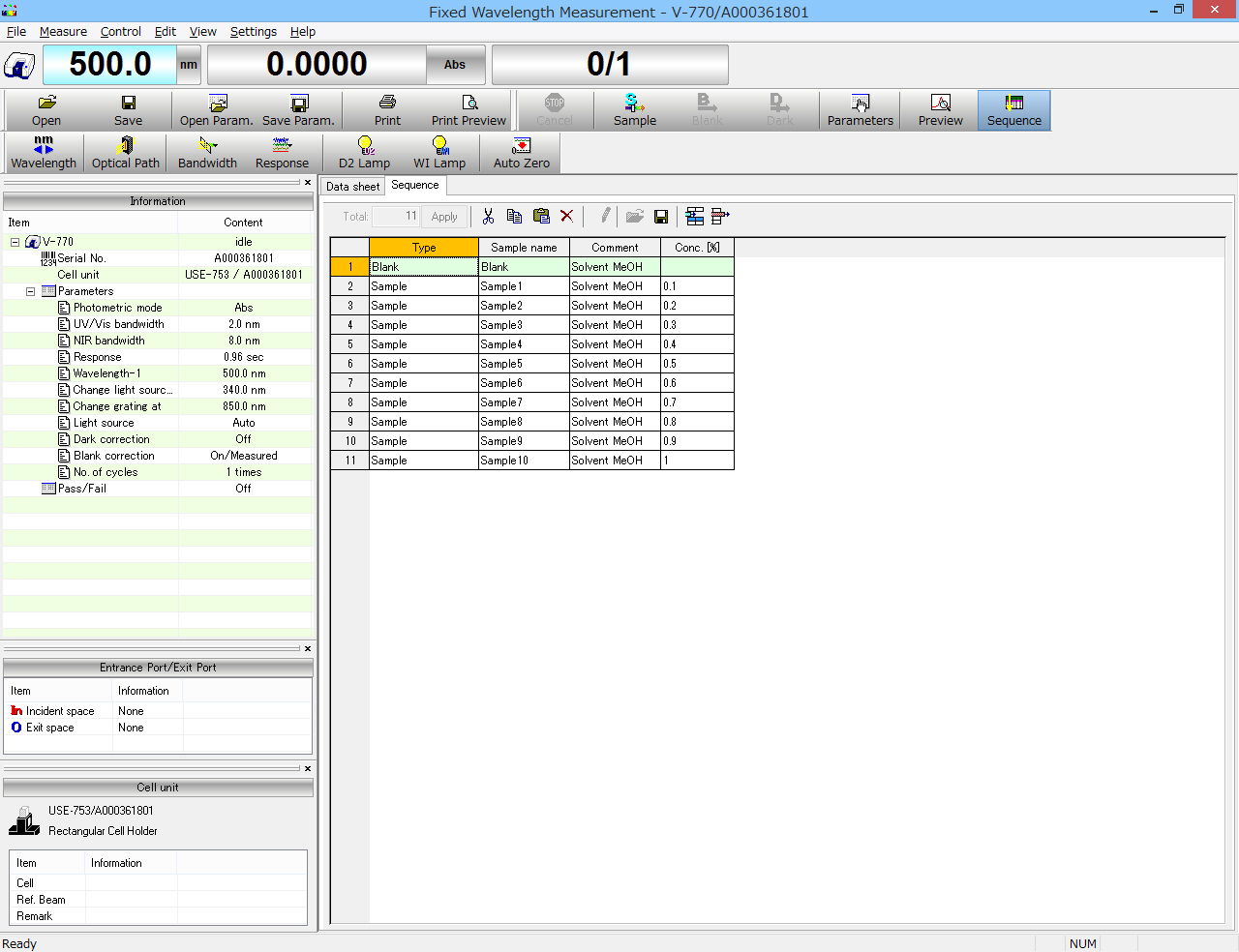 Measures the absorbance, transmittance, or reflectance spectrum of a sample. Sequential measurements can also be made on multiple samples, each of which can be assigned different measurement parameters.