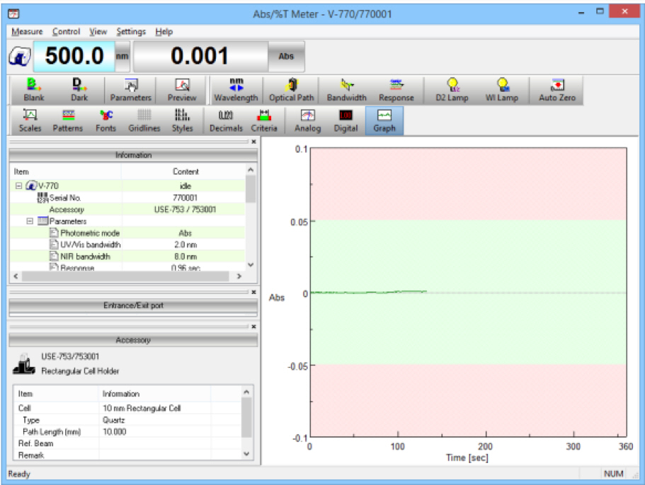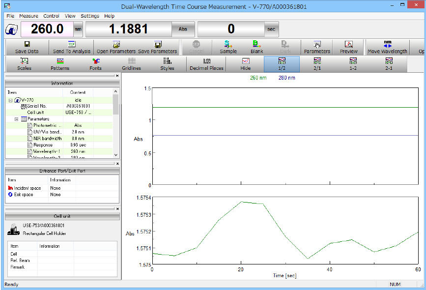 → Our program inculdes Spectra Measurement, Quantitative Measurement, Time Course Measurement, Dual-Wavelength Time Course Measurement, Fixed Wavelength Measurement, Abs/%T Meter, Parallel Kinetics Measurement, Validation, Daily Check.