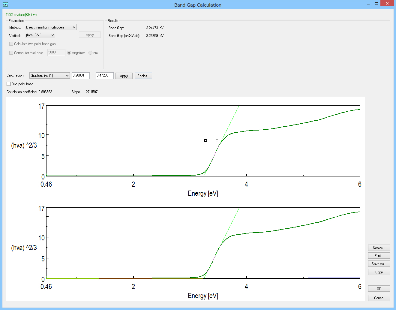 Calcuate the band gap of a semiconductor sample from its spectrum.
