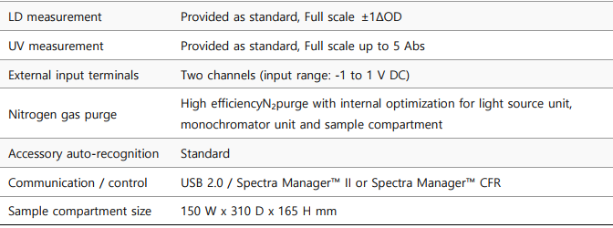 The wavelength range has also been significantly extended, allowing measurements to be obtained in both the vacuum-UV and NIR spectral regions using the standard PMT detector (163 – 950 nm) and an optional InGaAs detector (up to 1600 nm). Additional features now allow researchers to optimize their parameter specifications in order to obtain data with the highest resolution and S/N performance for a specific application set.