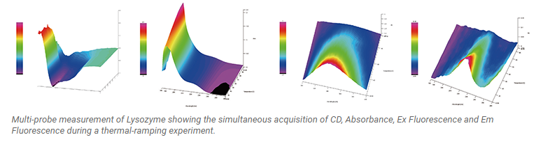 The latest quad-channel lock-in amplifier provides simultaneous acquisition of up to four data channels including CD, HT, DC, absorbance, linear dichroism (LD), fluorescence, fluorescence-detected CD (FDCD), fluorescence-detected LD (FDLD) and fluorescence anisotropy.
