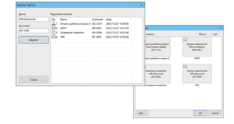 Registering frequently used measurement parameters in the method, you can perform the measurement by just selecting the target method from the next time.