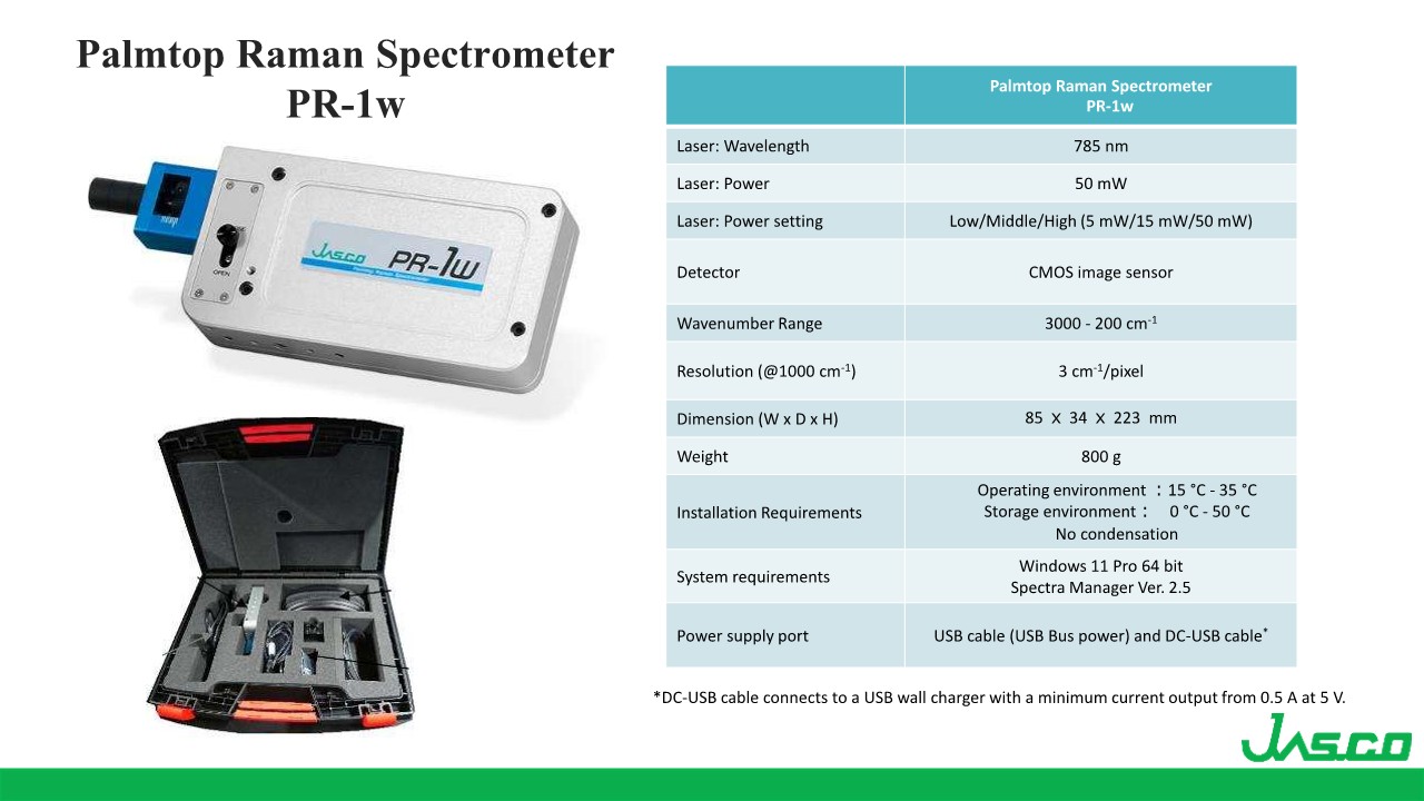 The PR-1s/PR-1w is a Raman spectrophotometer that fits in the palm of your hand. It integrates a 785 nm laser, spectrometer and detector in a compact housing.