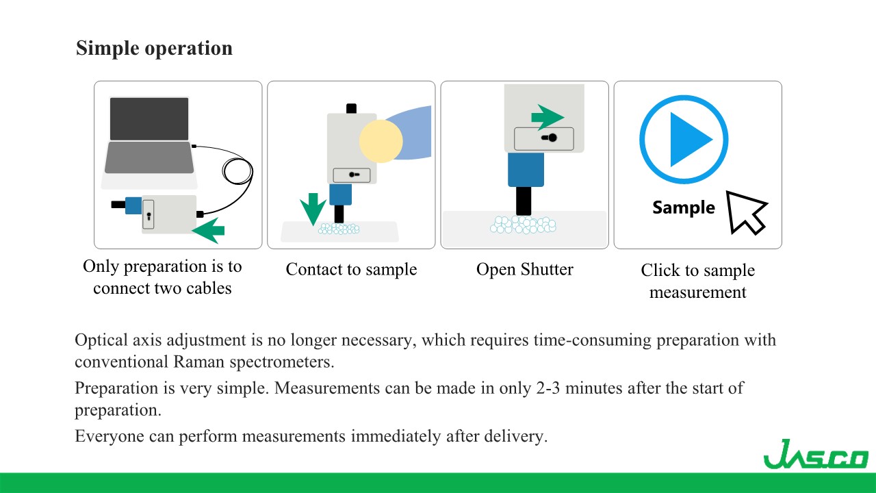 Compared to Raman microscopymeters, measurements can be performed with simple operation without detailed settings before measurement.