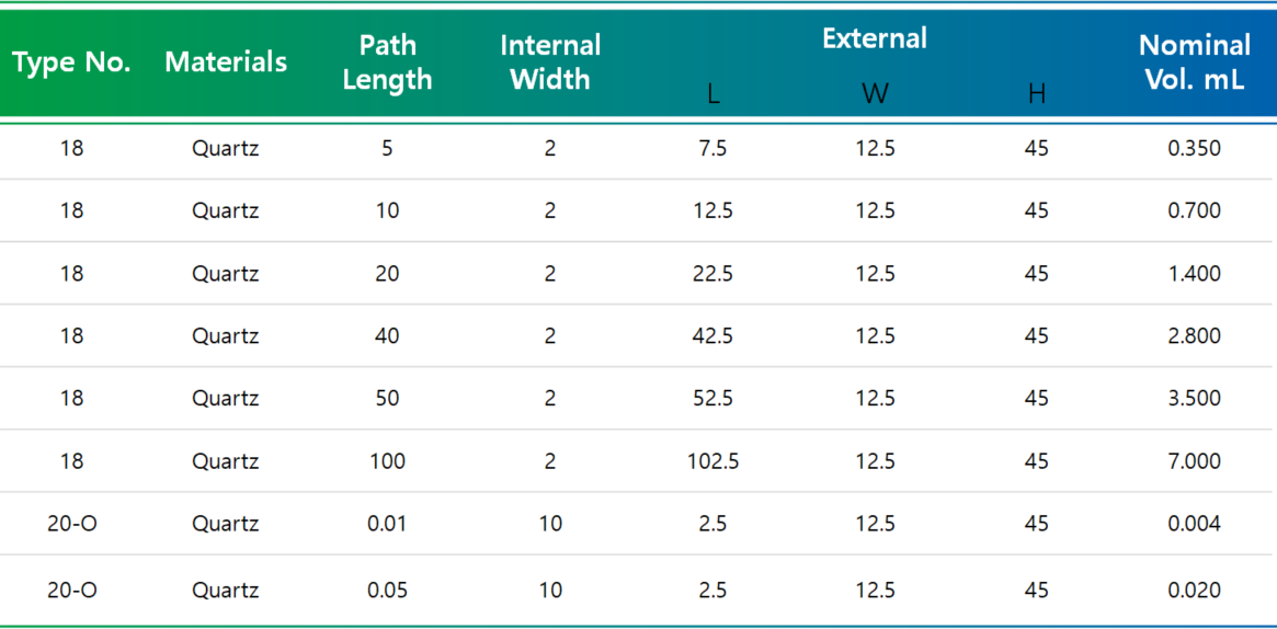 Cell Spacer * 20, 40, 50, 100 mm should be used with LSE-701 ( Long path cell holder ) * 1, 2, 5 mm should be used togerther with J/SPA1, 2, 5 (Spacer) * 0.05 ~ 0.5 mm should be used together with J/CH2049