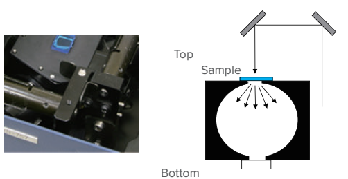 시료를 적분구 상단에 수평으로 눕혀서 배치 |